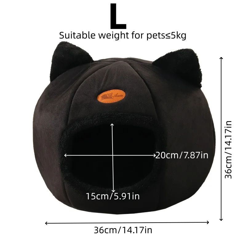 This adorable black cat-shaped pet bed is a cozy haven for your feline friend. Featuring cute cat ears and a plush, enclosed design, it provides a sense of security and warmth, perfect for cats that love to curl up and hide. The soft, velvet-like material ensures ultimate comfort, while the spacious interior offers ample room for your cat to stretch or snuggle. It seamlessly blends with home decor and gives your pet a private sanctuary to relax, nap, or play. A must-have for cat lovers wanting to spoil their pets!